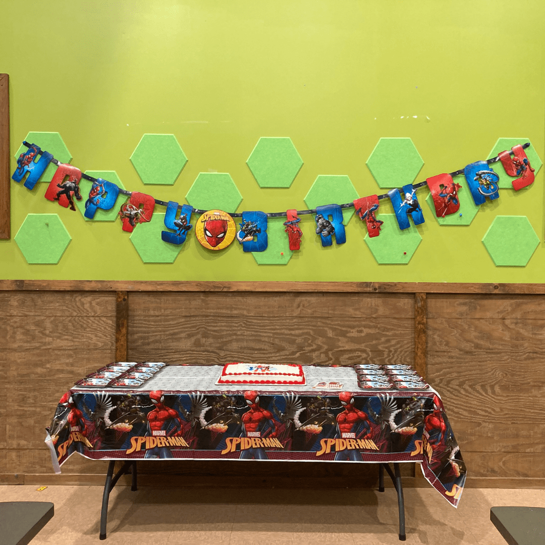 Your party comes with all the fixin’s you need (white plates, napkins and utensils), but you can also upgrade to our theme packages … all while skipping the trip to the store!