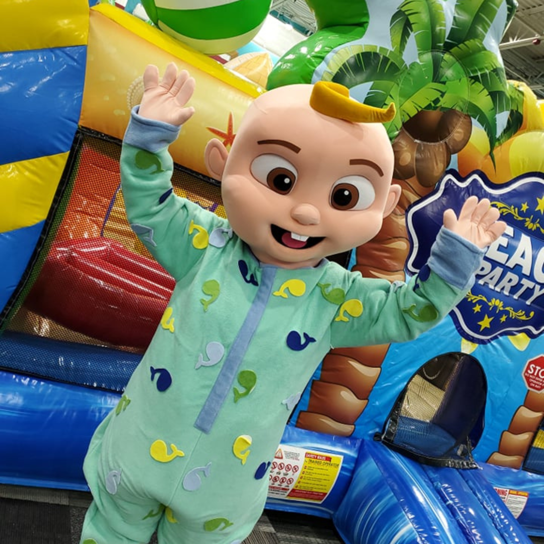 Our mascot character add a special spark to your child’s birthday party! Our characters spend about 20 minutes with birthday party kids giving them high fives, hugs & posing for pictures. Unfortunately, our mascot characters can not talk and are limited on what they can do. Another staff member will be there to assist them and facilitate the visit. Character visits can be added on to our theme packages! Get all the decorations and a character visit to make your child’s party unforgettable for $150.