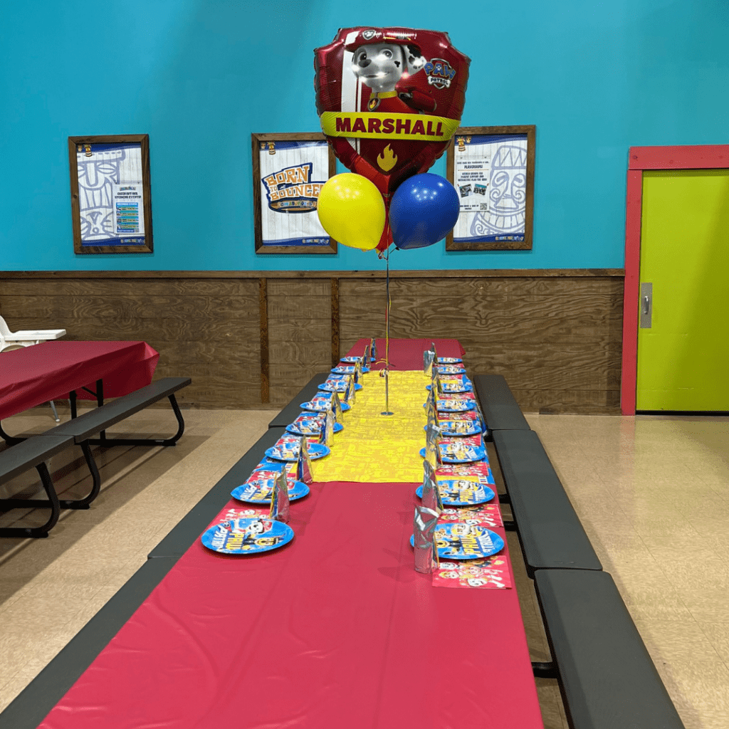 For private parties, we will have plenty of time to decorate while your guests bounce and play! Typically, your party pros will start decorating 40 minutes after the start of your private party. Since our private parties follow the same rotation, you may not have access to the cake room before then, as another party may be in there.