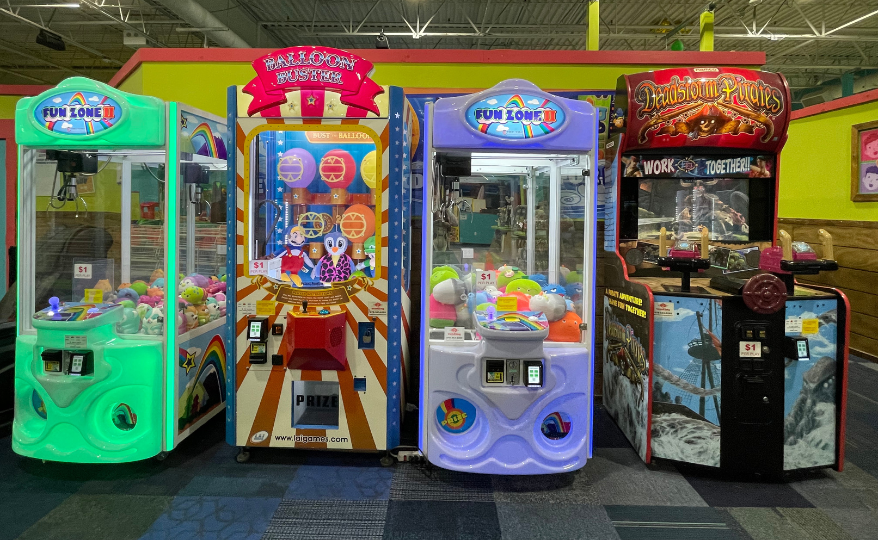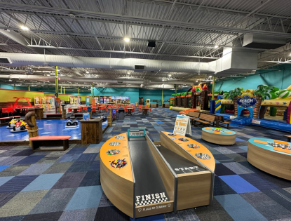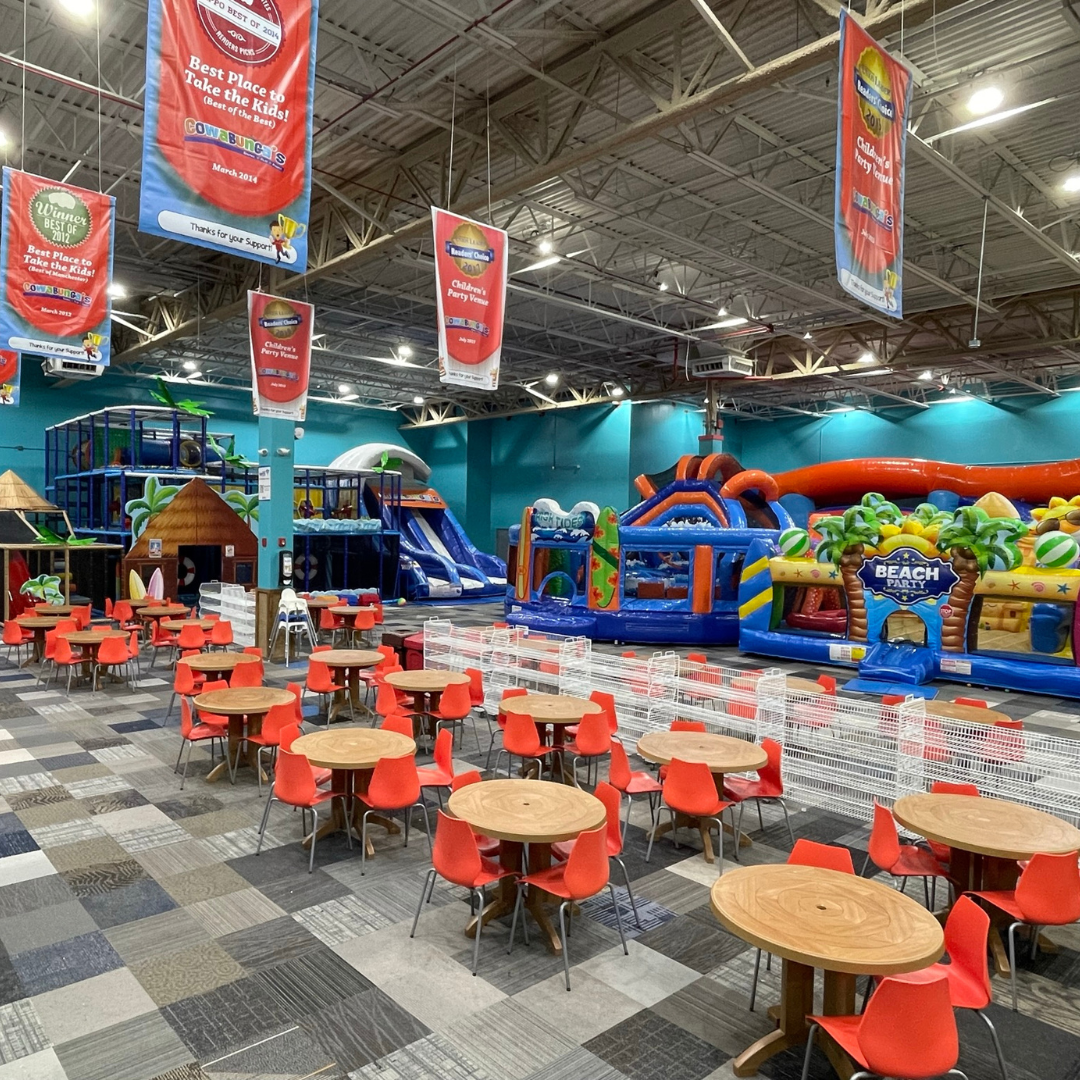 Cowabunga’s in Manchester is located in the former Lowe’s building near behind the Mall of New Hampshire on Huse Road. We are located in a plaza with Chunky’s Manchester & Planet Fitness. has a 12,000 square foot open gym filled will inflatable fun, interactive climbing structure, creation station building area and oversized games. Our Manchester New Hampshire store also has a kitchen with a great menu for meals & snacks! This location has been open for over three years. We closed our Hooksett, NH location and moved all the fun to Manchester!