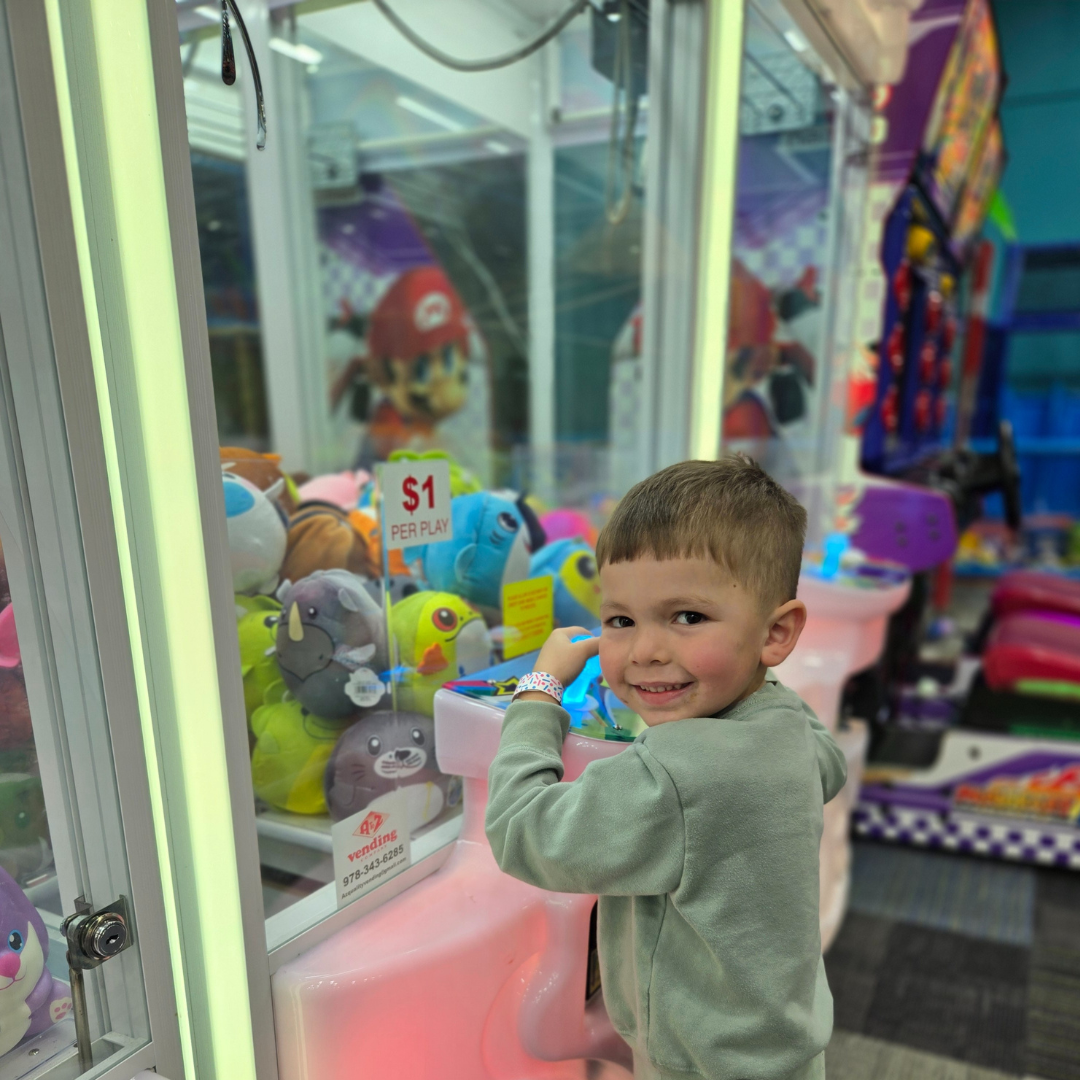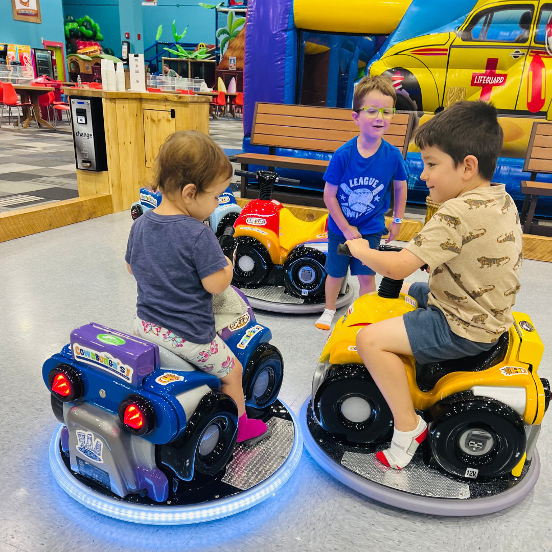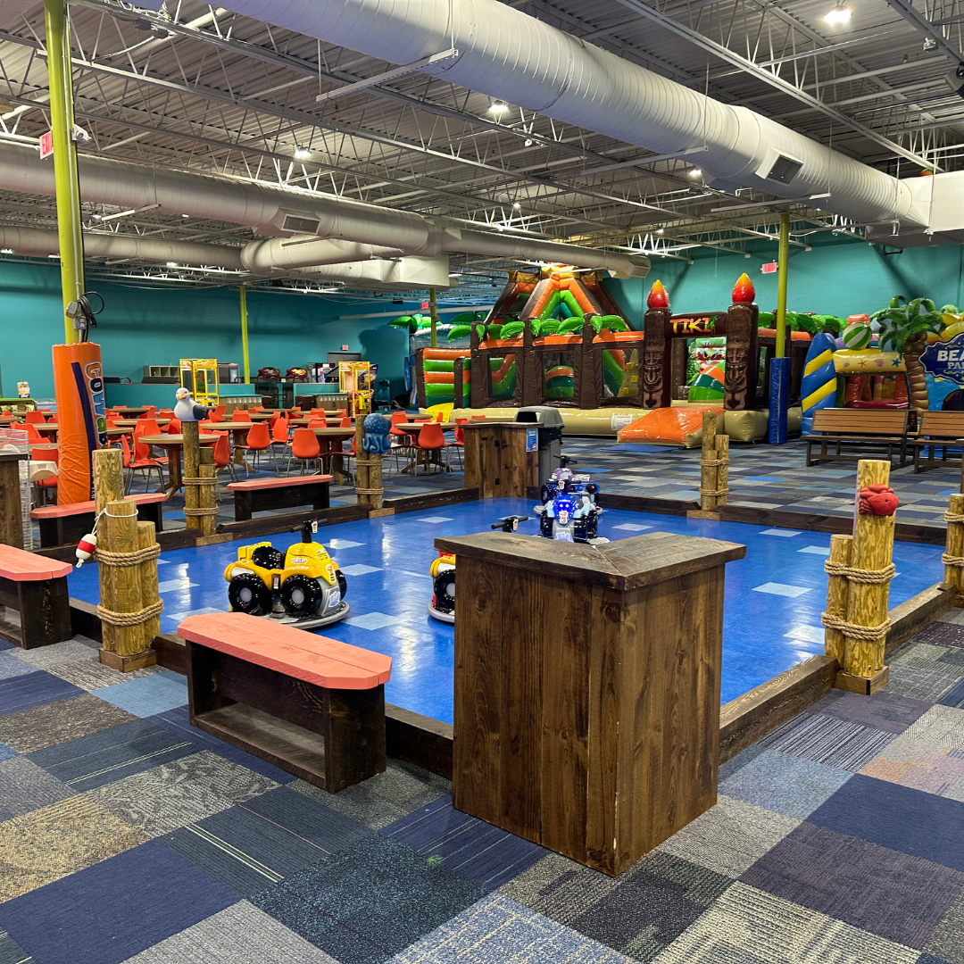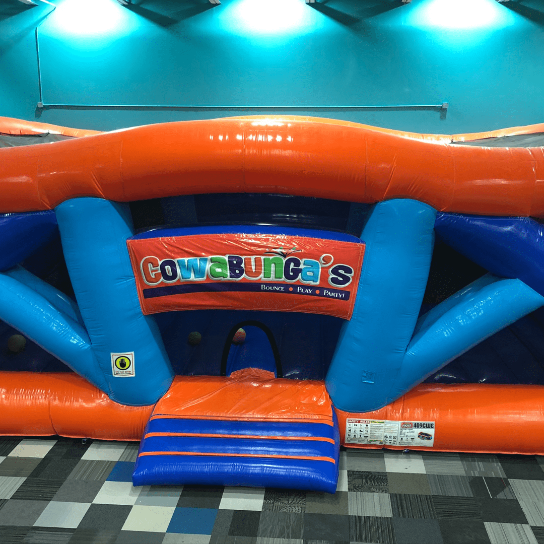 Cowabunga’s in North Reading is located in the Atlantic Plaza on North Main Street with Stop & Shop, Winterhill Bank and Starbucks. Our open gym space is about 12,000 square feet filled with inflatable slides, playgrounds and fun! We also have a creation station where kids can build and race cars. Cowabunga’s in North Reading has drinks, snacks and prepackaged, nut free ice cream at this location.