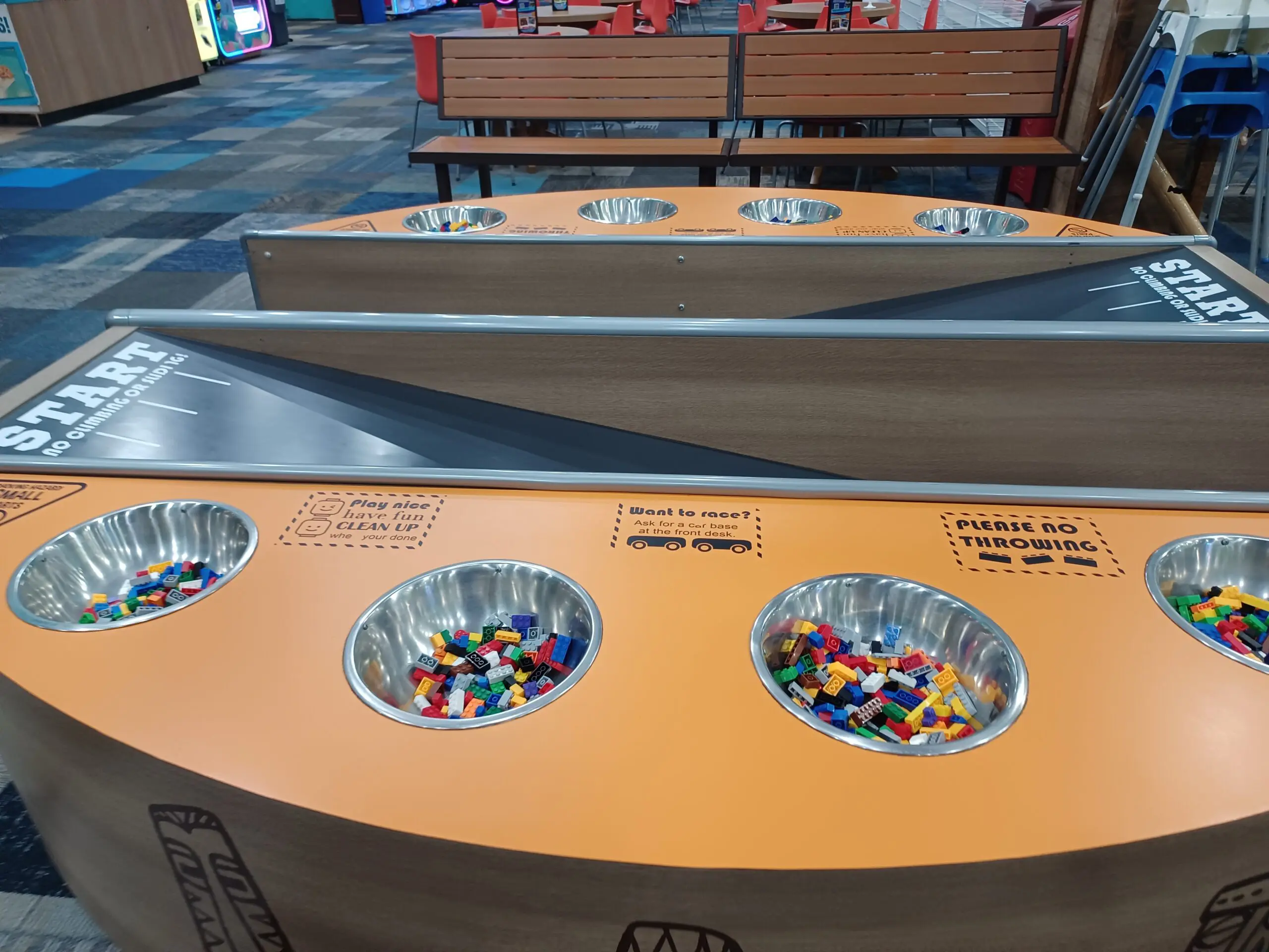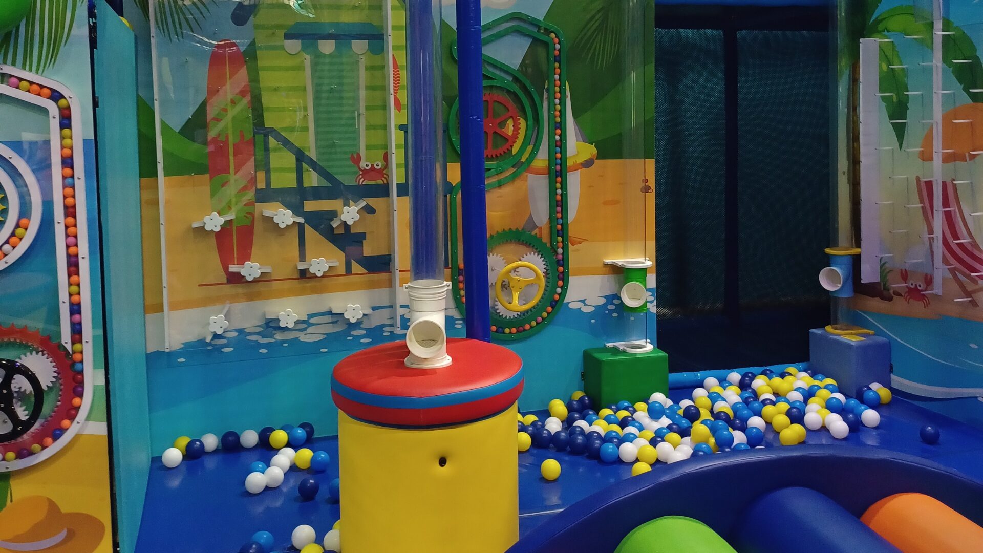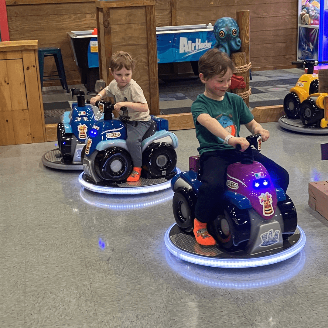 Cowabunga’s in North Reading is located in the Atlantic Plaza on North Main Street with Stop & Shop, Winterhill Bank and Starbucks. Our open gym space is about 12,000 square feet filled with inflatable slides, playgrounds and fun! We also have a creation station where kids can build and race cars. Cowabunga’s in North Reading has drinks, snacks and prepackaged, nut free ice cream at this location.
